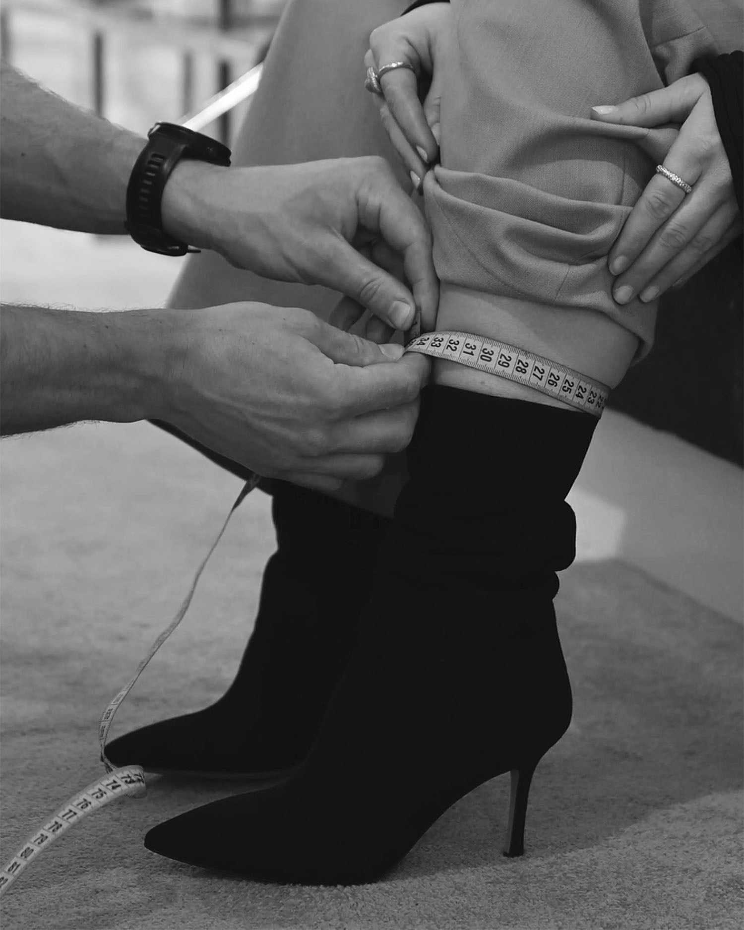 You can choose how you'd like the boot shaft to fit. If you prefer wearing trousers tucked into your boots, we can adjust the fit to a wider shaft. Or, if you find it difficult to get boots that fit your legs comfortably, we’ll tailor the shaft to suit you.